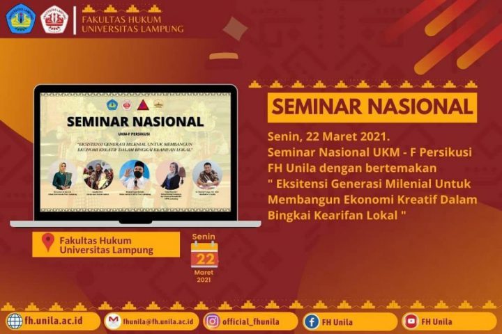 Bandar Lampung, 22 Maret 2021. Seminar Nasional dengan tema “Eksistensi Generasi Milenial Untuk Membangun Ekonomi Kreatif Dalam Bingkai Kearifan Lokal” yang diadakan oleh UKM-F Persikusi Fakultas Hukum Universitas Lampung. Acara ini dibuka oleh Dekan Fakultas Hukum Universitas Lampung, dalam hal ini diwakilkan oleh Wakil Dekan Bidang Akademik dan Kerjasama Dr. Rudi Natamiharja, S.H., DEA. Acara […]